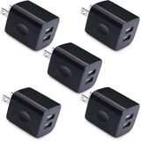 5-Pack x 2.1A Black Dual Port USB Wall Plug