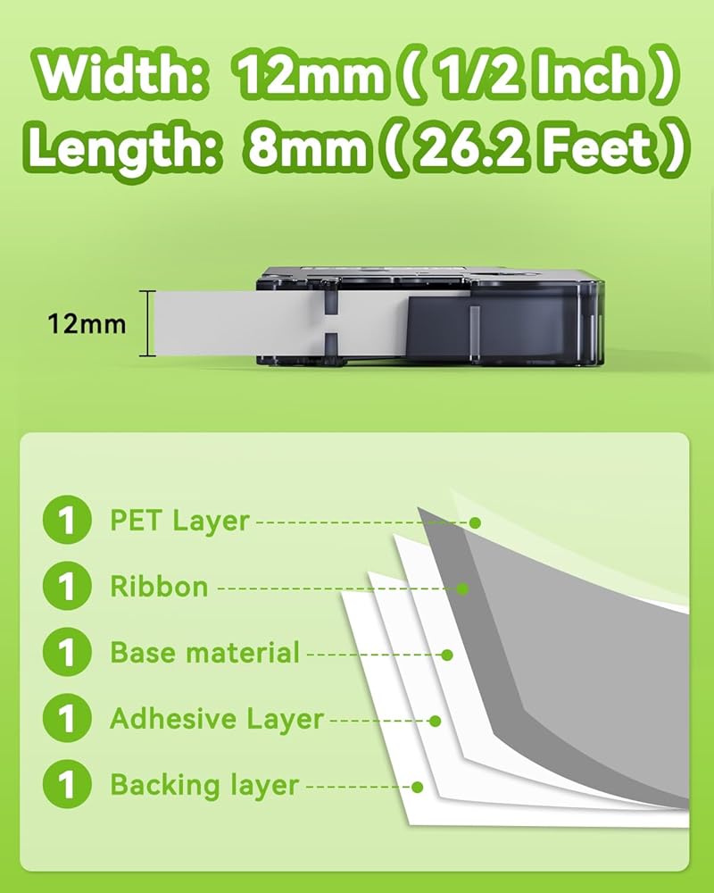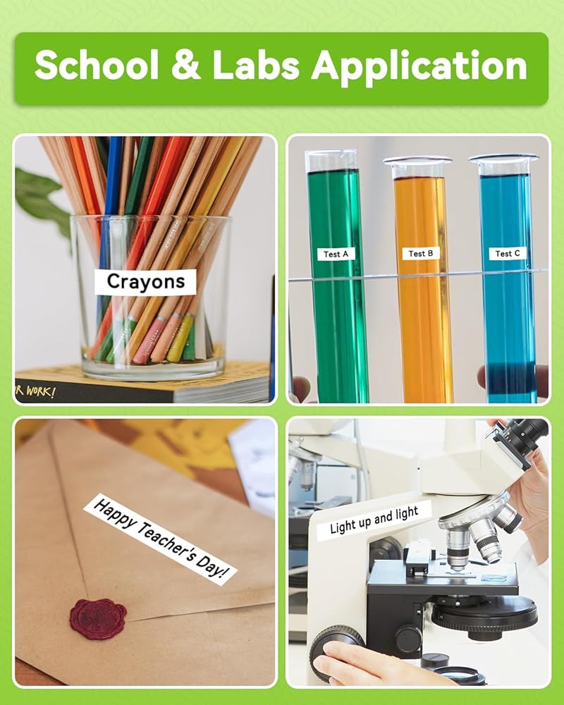 Wide Application: These 1/2 Inch label tape are ideal for flat and dry surfaces whatever indoor or outdoor, including in home, office, school, hotel, lab and hospital for labeling files, folders, shelves, books, cabinets, accessories, etc.
