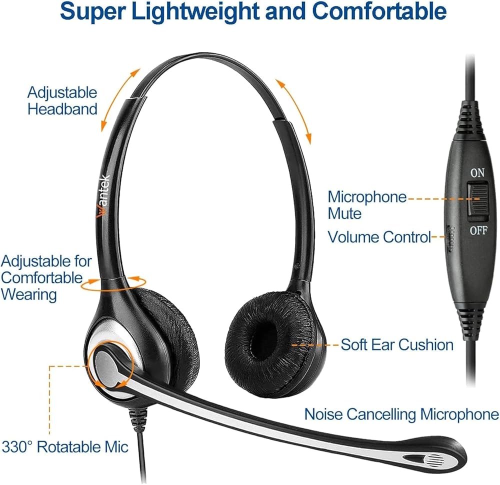 ✅【Super Durable Precision Design】, Quality plastics, unibody headband construction, superior quality microphone makes this call center headset with microphone sturdier and more heavy duty headsets for call center, telemarketing & office.