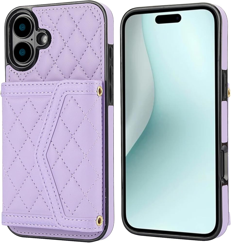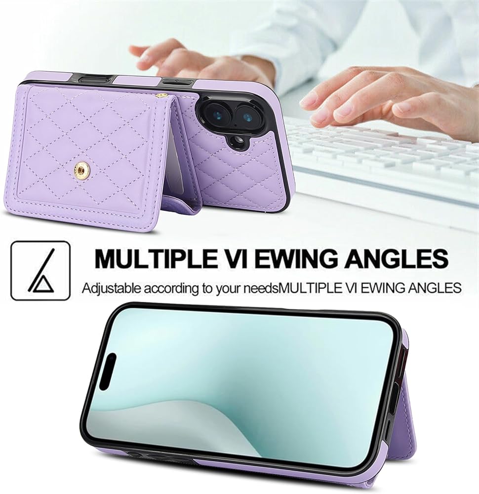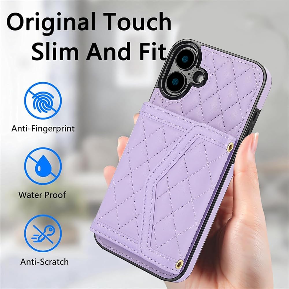 for Apple iPhone 16 Crossbody Wallet Case for Women, PU Leather Card Slot Phone Case with Cash Pocket Kickstand Purse Lanyard Case Cover for iPhone 16.Pocket Purple