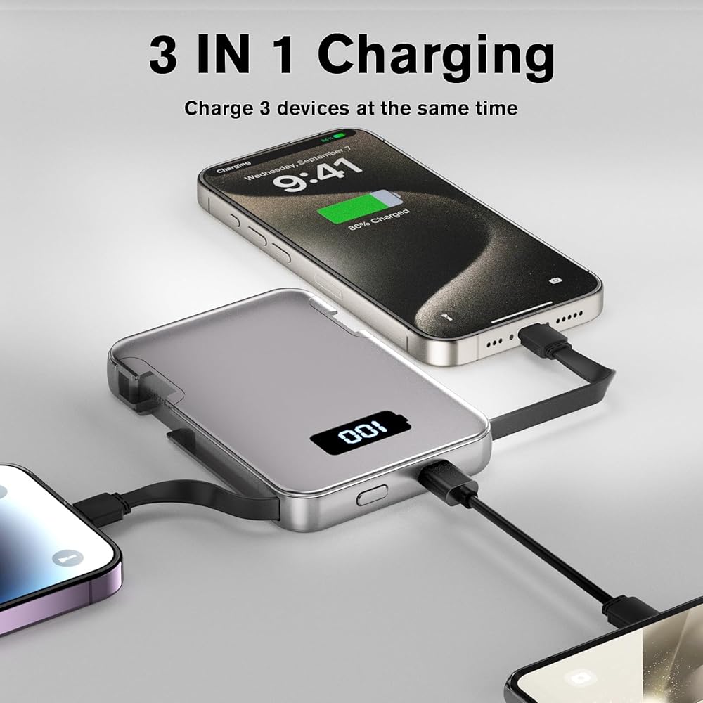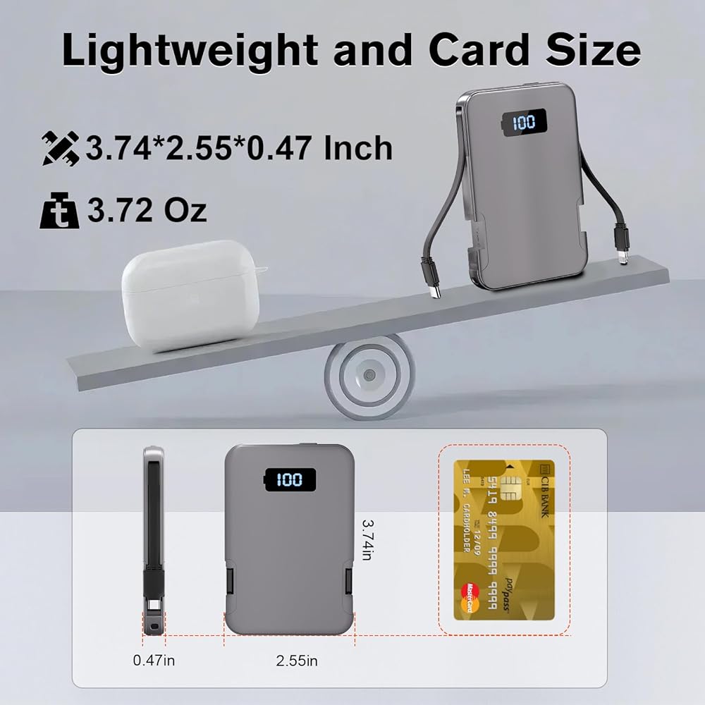(5000mAh Meet Your Dairly Use) - It Contain 5000mAh of power, almost enought to get another full charging for your iphone 16 or samsung s23, its your best power partner to keep your phone alive all day or as an emergency power charger.