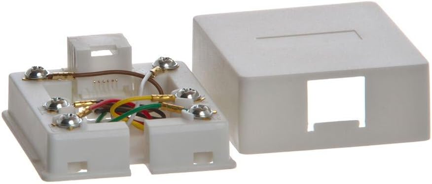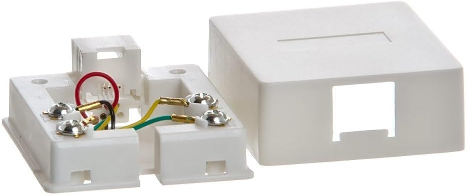 This single port surface mount box is designed for use with RJ12 6-pin 6 conductor jacks, making it universally compatible with common devices such as landline phones, fax machines, answering machines, and more.