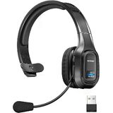 TECKNET Trucker Bluetooth Headset, Trucker Bluetooth Headphones with Microphone AI Noise Canceling Wireless On Ear Headset, Hands Free Wireless Headset for Cell Phone Computer Office Home bright black