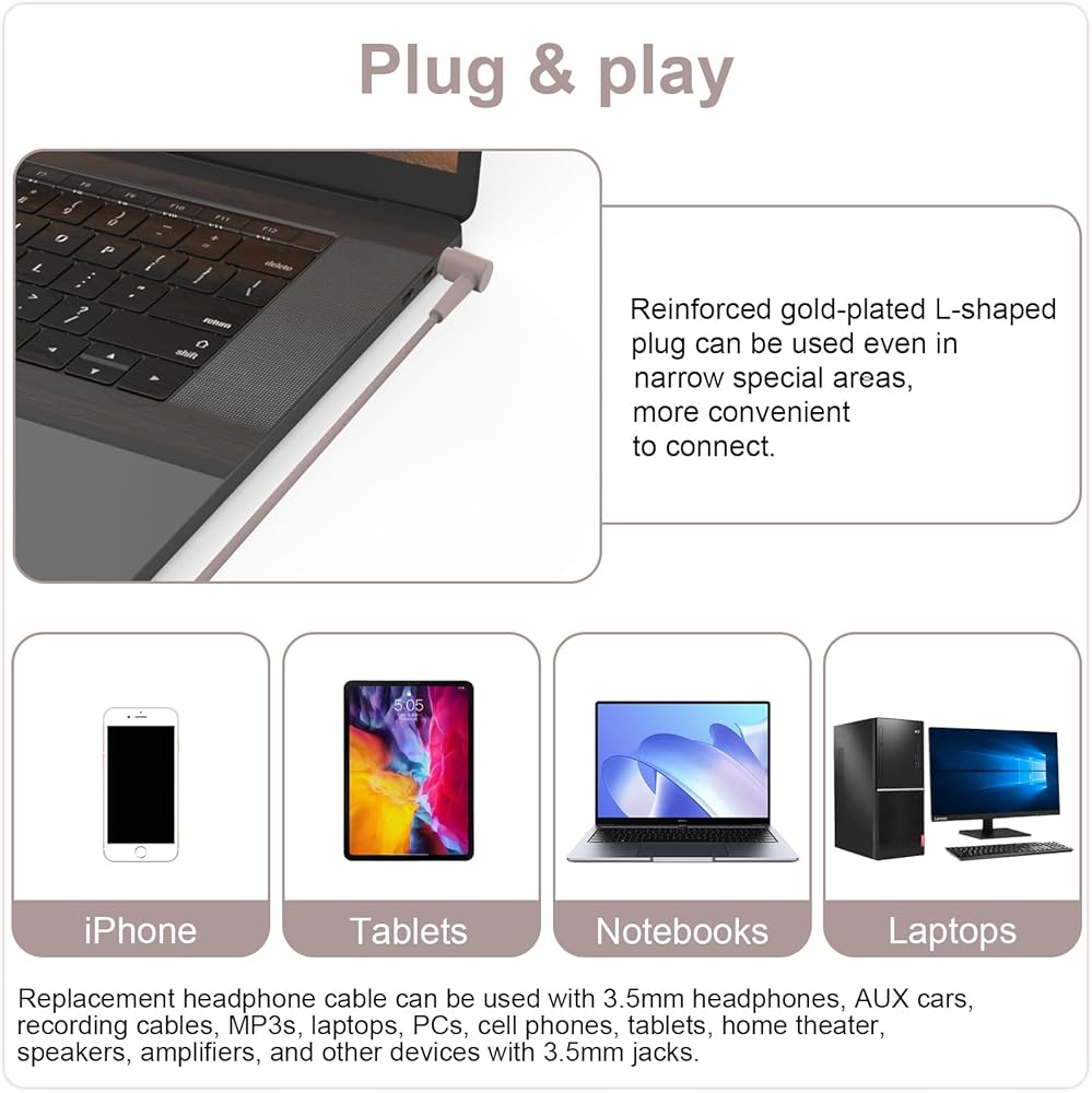 The headphone audio cable is made of high quality TPE wire, which has passed more than 10,000 times of bending test for long service life and high tensile strength of the cable.
