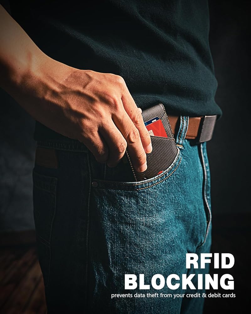 Slim Wallet for Men - This minimalist wallet is just 1/2 inch thick, measuring 4.4" x 3.1". It features a money clip and 11 card slots, holding up to 12 cards. Designed to fit perfectly in your pocket, it offers a large capacity in a slim profile for everyday carry