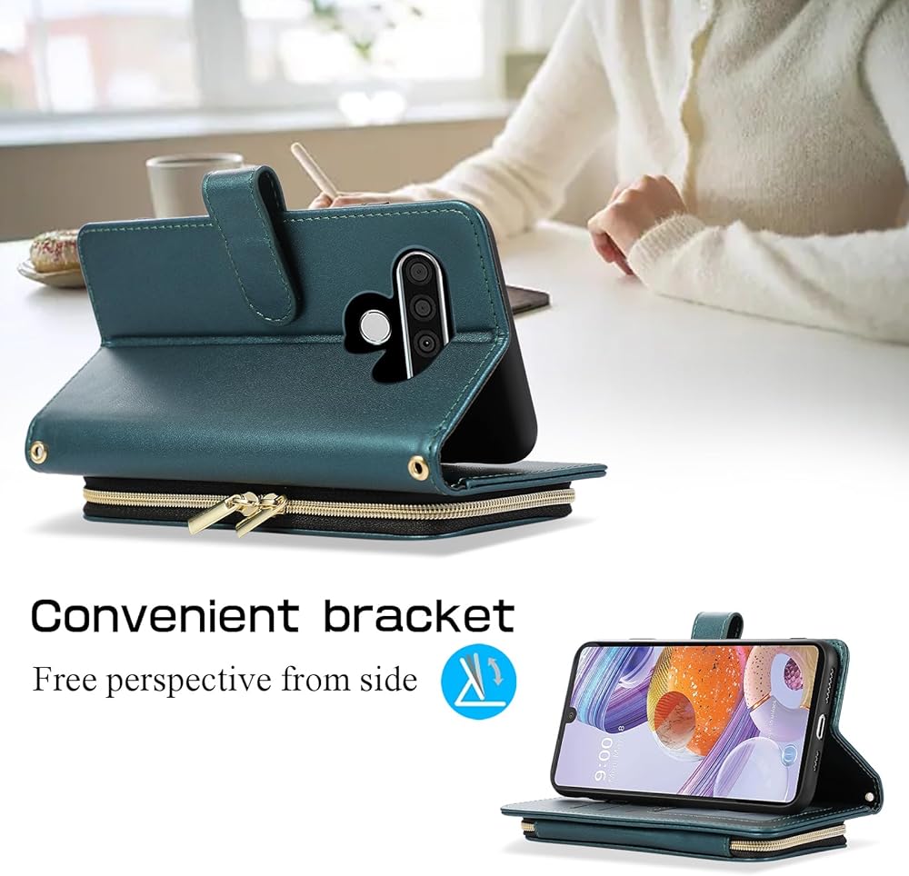 Argyle Wallet Case for LG Stylo 6/Stylo6 Plus/K71 Stylus with Wrist Strap Shoulder Strap, 9+ Card Slots Zipper Purse Stand Cell Phone Cover for LGStylo6 6+ 6plus Style 06 Six 2020 Green