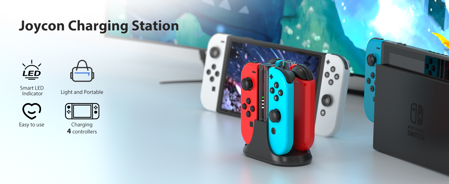 YCCTEAM Charging Dock is Compatible with Switch&Switch OLED/Lite, Charging Station Charges Up to 4 Joy-Con Controllers Simultaneously, Switch Charger Station with LED Indicator and Charging Cable