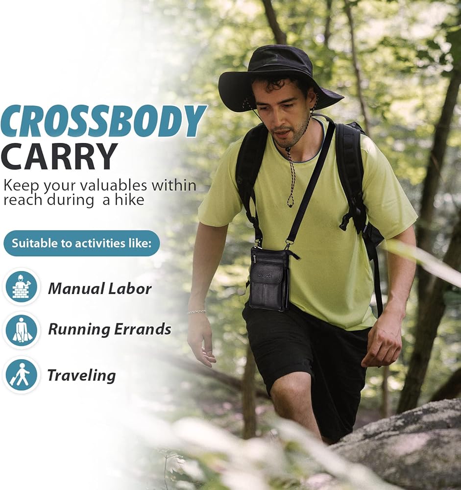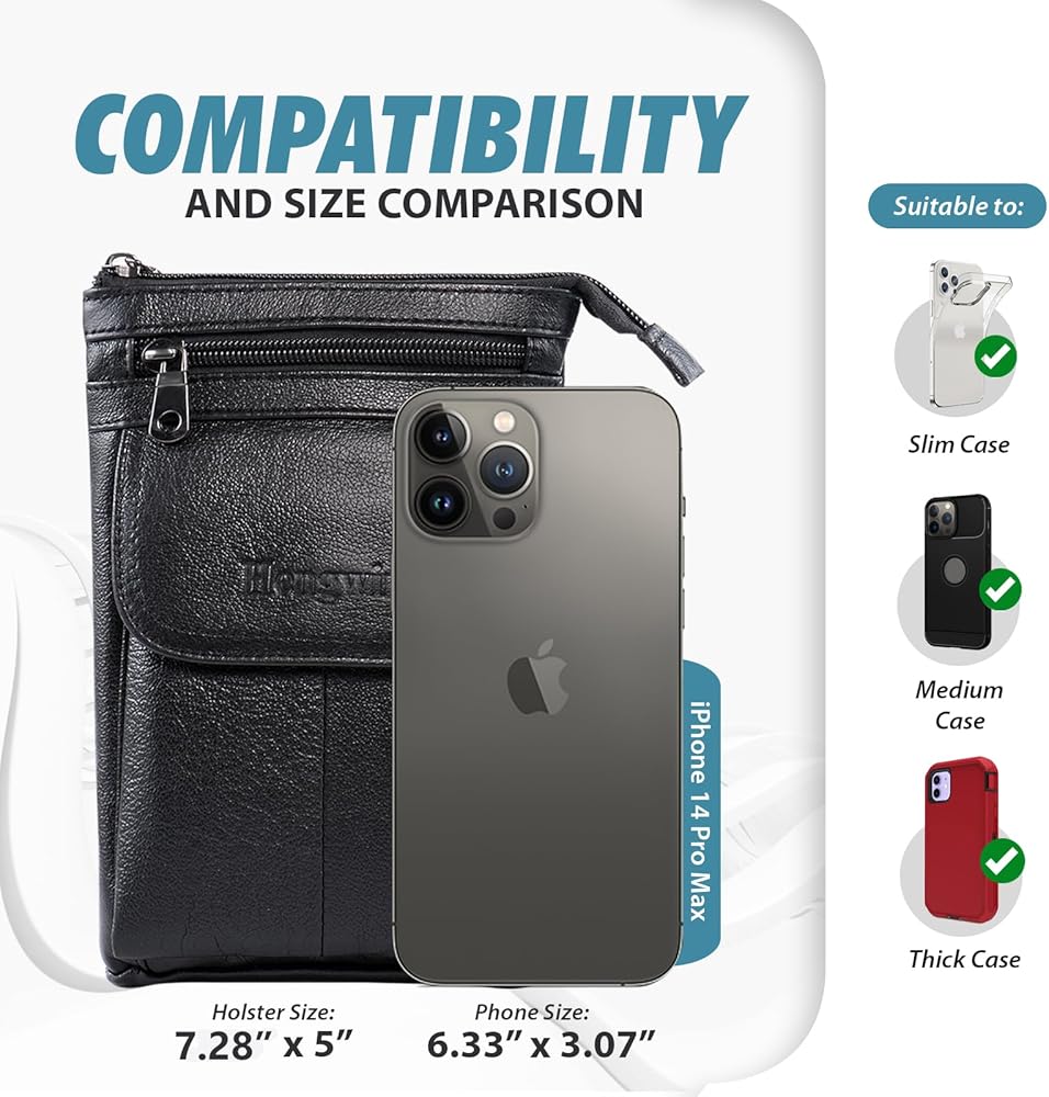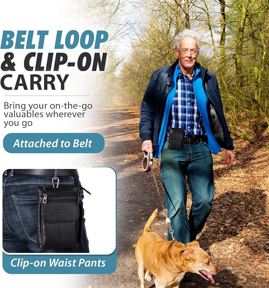 Exceptionally compact companion, measuring 4.92 x 1.57 x 7.48 inches. This stylish men's phone belt bag not only cradles your cellphone securely but also makes room for your everyday essentials like cash, cards, passport, and more.