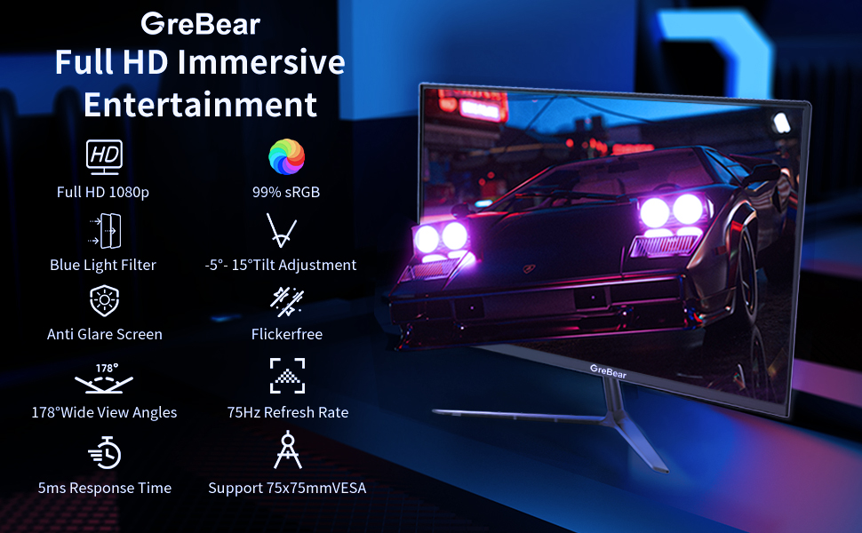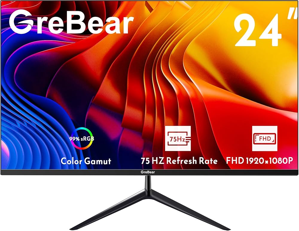 Versatile Connectivity】This GreBear computer monitor 24 inch interfaces which support pc monitors 24 inch, Gaming Laptops, Switch, XBOX, PS gaming console through HDMI and VGA ports easily. We provide 1-year product quality service and 7*24 hours quick solution for any product/order issue, if you have any questions, please feel to contact us
