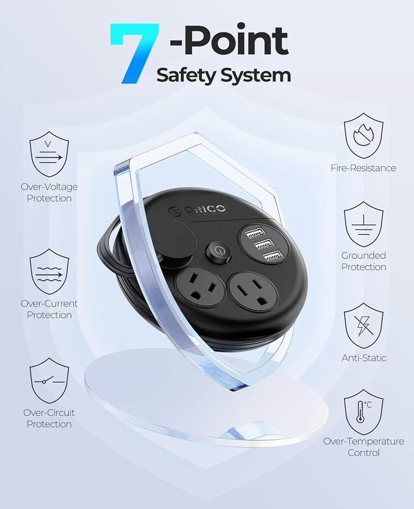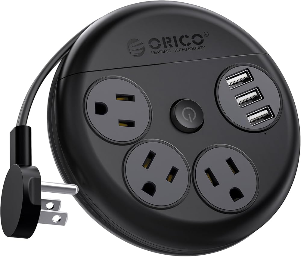Travel Power Strip: The round power strip is compact (4.8" x 1.4") and lightweight (8 oz), was designed for effortless portability. You can take this small power strip anywhere without compromising on space or weight!