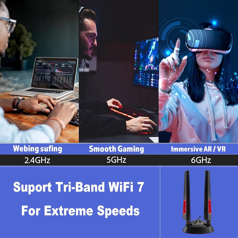 2. Frequency Range: Tri-Band WiFi 2.4GHz (2400 - 2485 MHz),5GHz/5.8GHz (5150 - 5850 MHz), 6GHz(5900-7125MHz