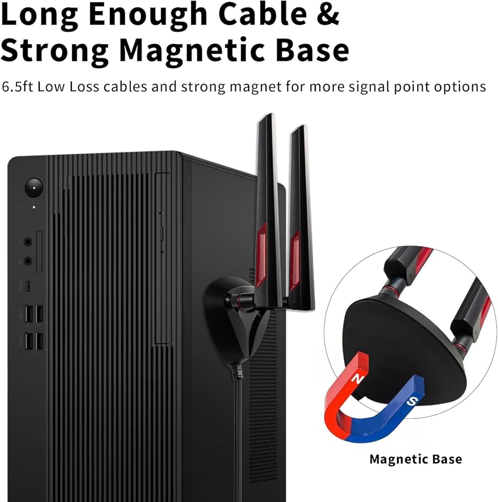 New 6GHZ band brings faster speeds, This antenna helps you improve the speed and stability of your wifi signal, ensuring no network drops, enhancing the smooth performance of 4K/8K HD videos and games, Say goodbye to Wi-Fi dead zones and weak signals.