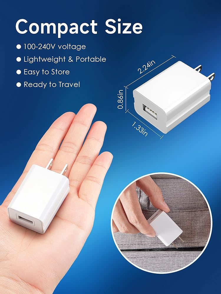 【WIDELY COMPATIBILITY】USB wall charger output with 5V/1A and input with 100-240V enables you to charge your mobile phone more quickly. The charger block is widely compatible with most cell phones, tablets, MP4 players, digital cameras, PSP, and other USB devices. The USB wall charger is a more consistent replacement for a wall plug.