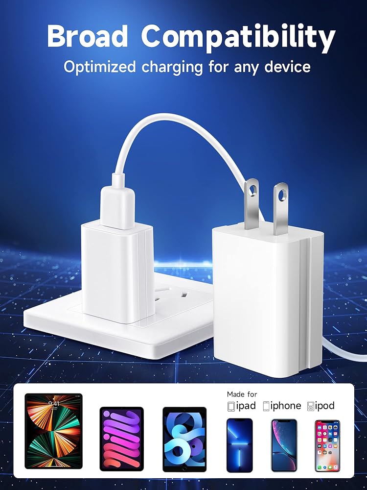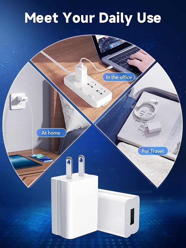 【CERTIFIED SAFET】U.S. and the World Electrical Standards compliant, the USB charger block is UL-certificated. Perfect internal high-quality chips & anti-throw design to extend the service life of USB wall charger. The shell of the USB wall plug is made of high-quality ABS, chemical resistance and excellent electrical properties.