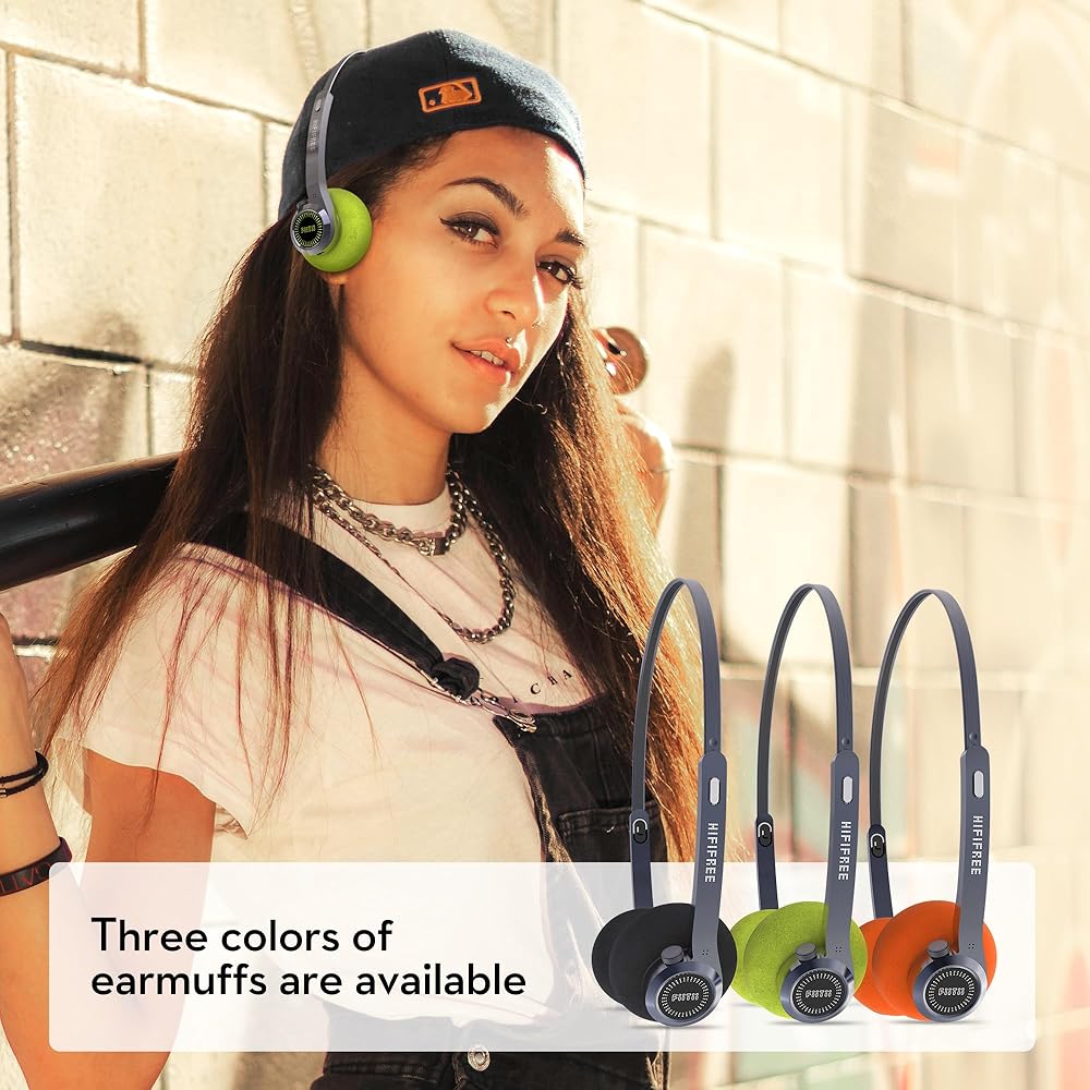 【Lightweight Comfort】The weight of HiFiFree retro headphones wireless is only 66 grams, which is very lightweight and compact. And with the adjustable headband design and flocked cotton earmuffs, there's no discomfort or strain on your ears—even after hours of listening, giving you long-lasting comfort.