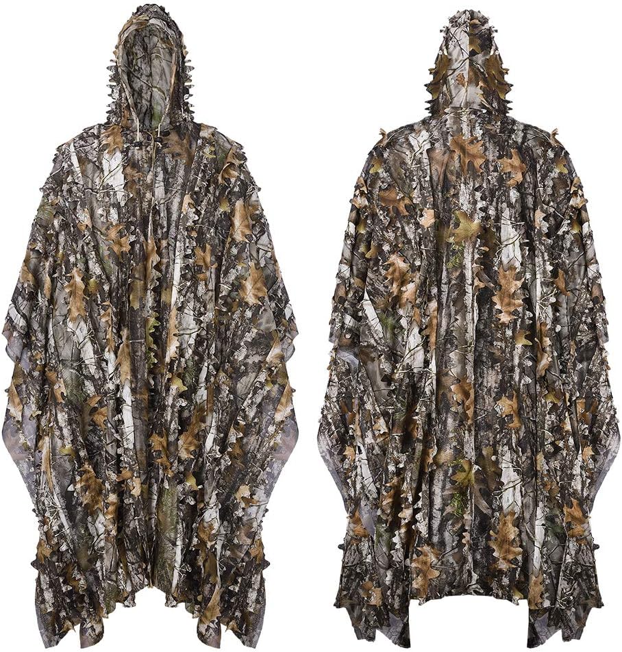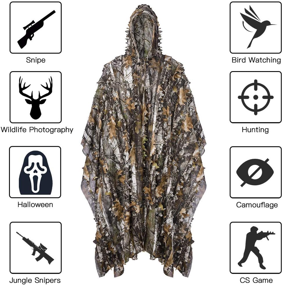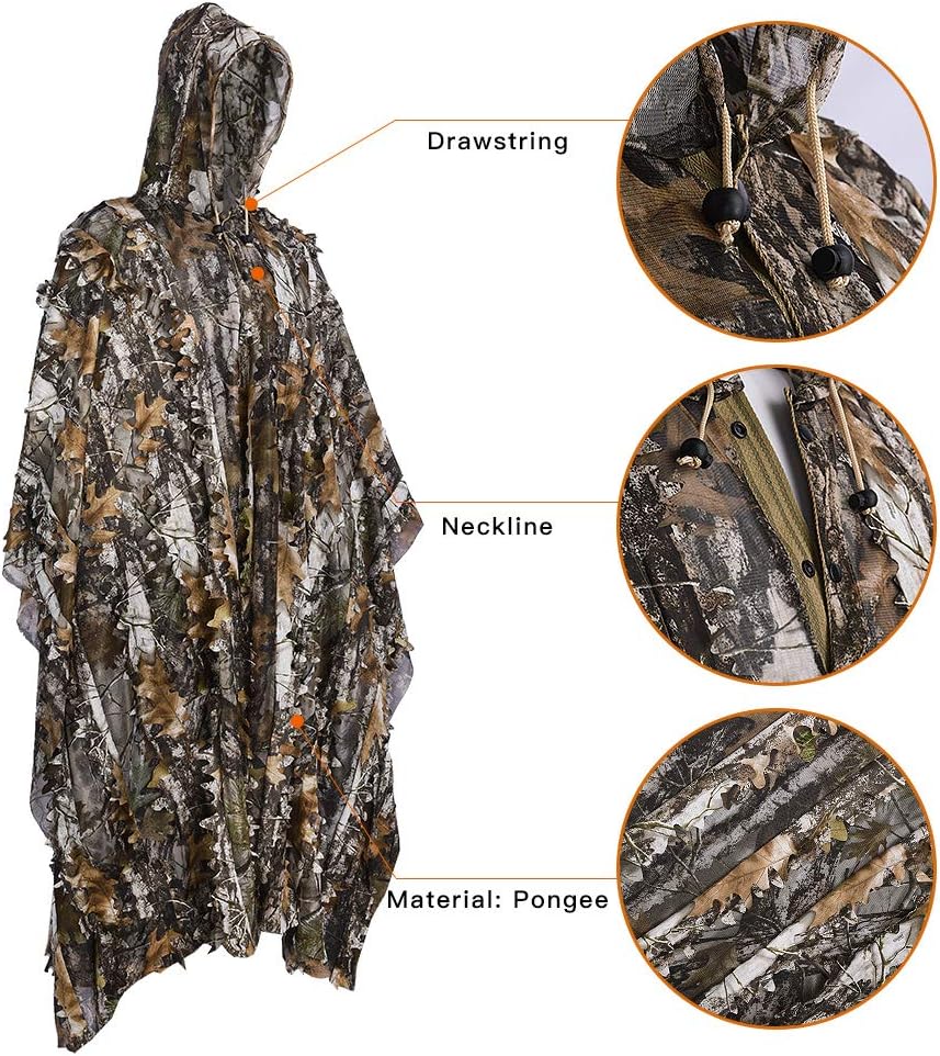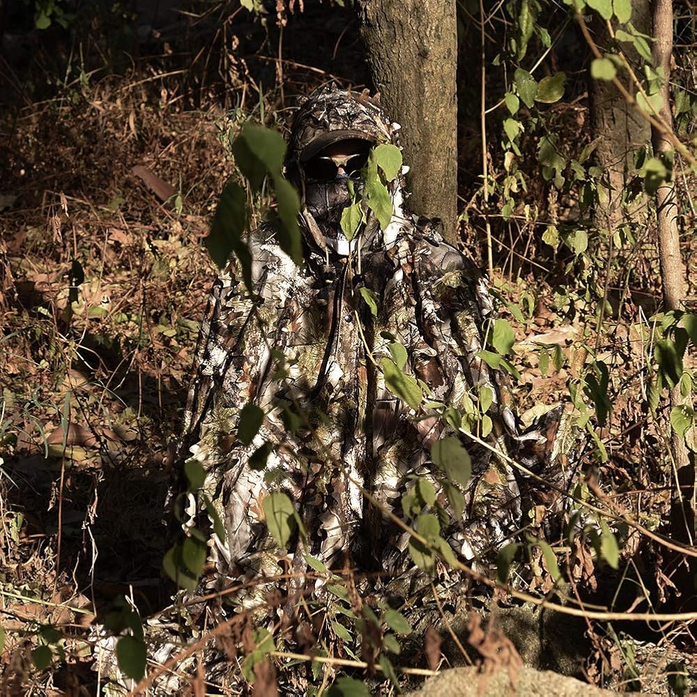 Tongcamo Hunting Ghillie Suit 3D Bionic Leafy Camouflage Clothing is made of Synthetic Polyester with mesh, apply for unique 3D lifelike Tree Camo leafy design, lightweight, breathable, comfortable, quick drying. It is widely appliaction for Jungle Hunting, Wildlife Photography, Bird Watching, Shooting, Halloween Costume Play, Disguise, CS Game, Paintball, Airsoft ect.