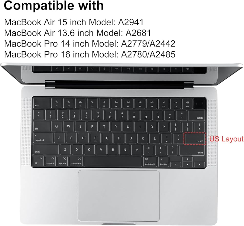 Keyboard Cover Compatible with MacBook Pro 14/16 2021 2022 2023 M1/M2/M3 Pro/Max , A2442 A2485 A2779 A2780, M2 MacBook Air 15/13 A2941 A2681