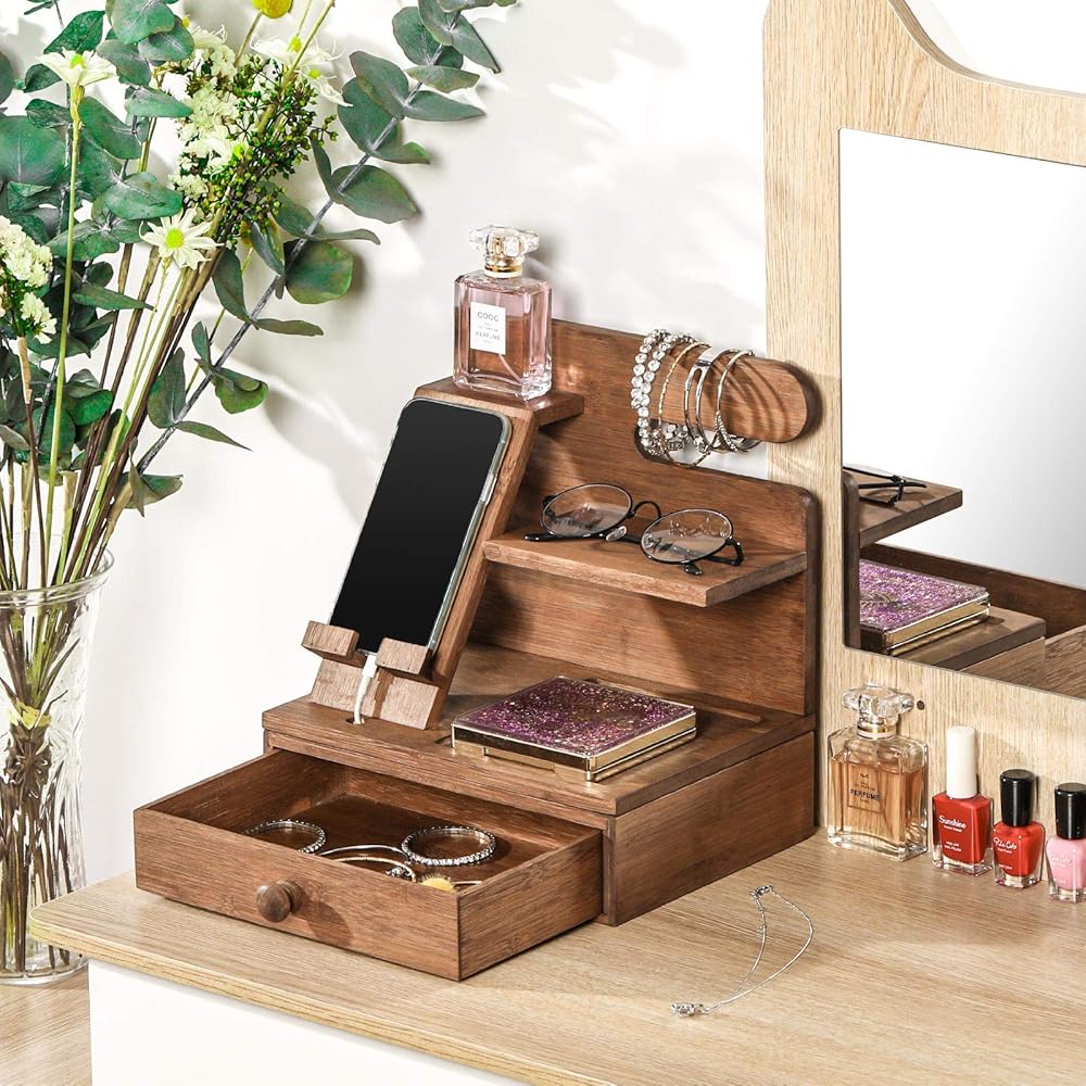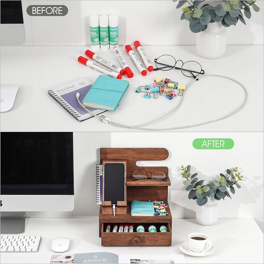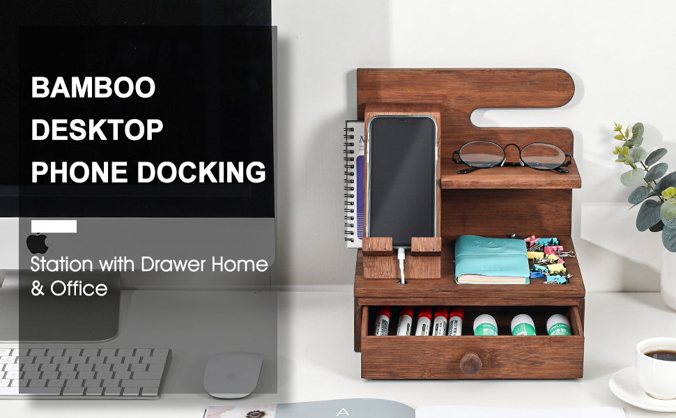 With Pull-out Drawer: Our docking station has a pull out drawer bottom, can be separated as 2 individual items to use, the bottom drawer can help you storage extra desktop accessories; Great gift for your husband, dear dad, for your men who you value; This also fit for women place on dressing table to storage some makeup items or perfume, jewelry