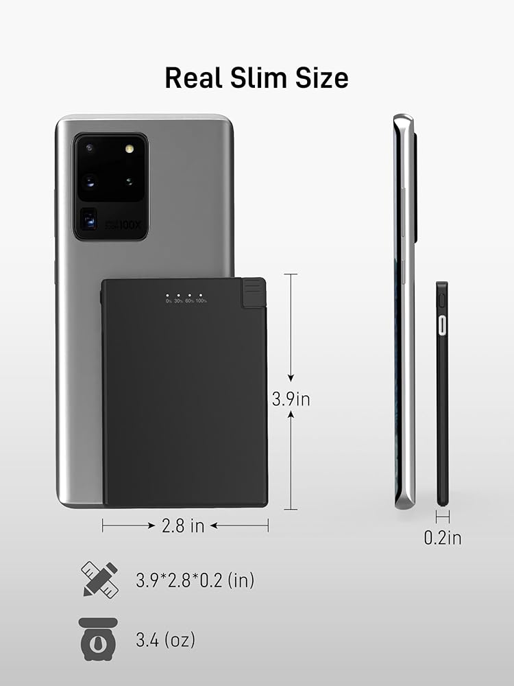 Auskang Slim Portable Charger with Built in Cable - Ultra Thin Power Bank Compatible with iPhone 15 Series Samsung Galaxy/Note Google Pixel and Other Android USB-C Smartphones