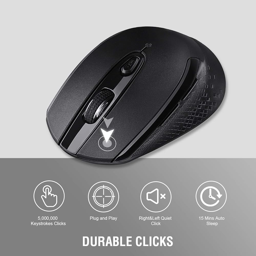 High Durability and Stable Connection: Through 5,000,000 times keystroke test to ensure the super durability of this cordless mouse, 2.4GHz wireless technology can ensure the stability of the mouse connection, and guarantee the distance of up to 50 feet Wireless connection.