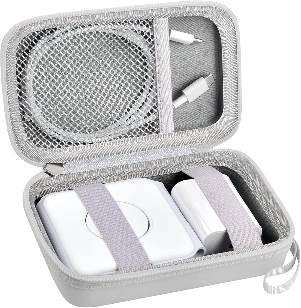 Easy to carry case for phone charger battery pack: For ucomx Charger Case with well-made 360-degree zipper outside makes portable charging staion easy to open and close. Hard case aslo have a removable hand strap, can take the charging mat for ucomx to the cafe, gymnasium. Compact wireless charger case can be placed in the bag or suitcase while traveling, camping, no more worry about the devices for apple out of power.