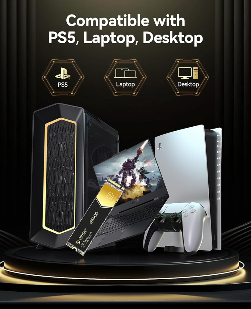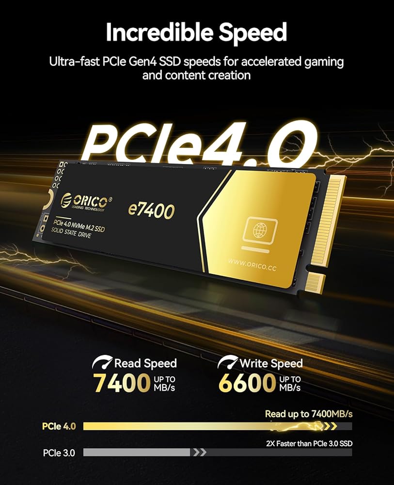 ORICO 2TB NVMe SSD PCIe 4.0- Up to 7400MB/s, M.2 2280 PCIe 4.0X4 Internal Solid State Drive, Fast Heat Dissipation, Compatible with macOS Windows for Gamers and Creators-e7400