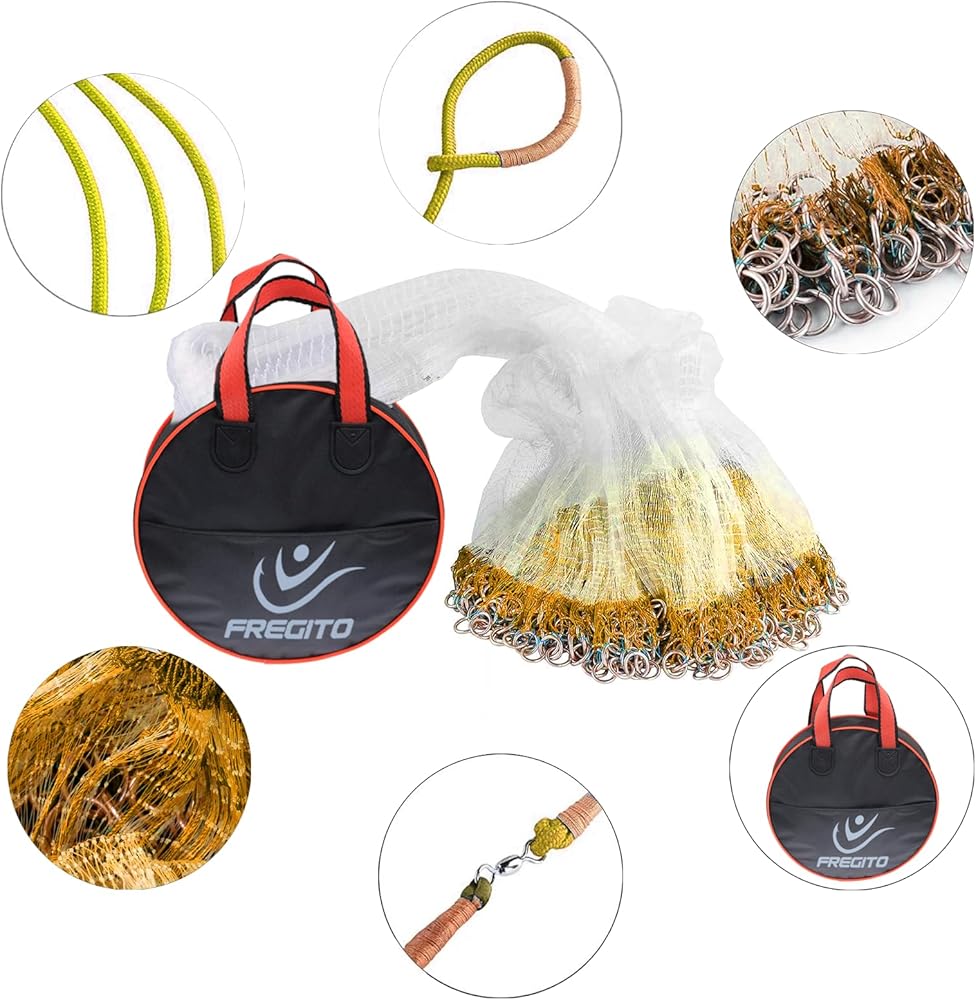 FREGITO handmade cast nets are made from extra soft, high end nylon monofilament. Strong monofilament raw material with little water absorption makes cast nets durable and easy to take back from water.