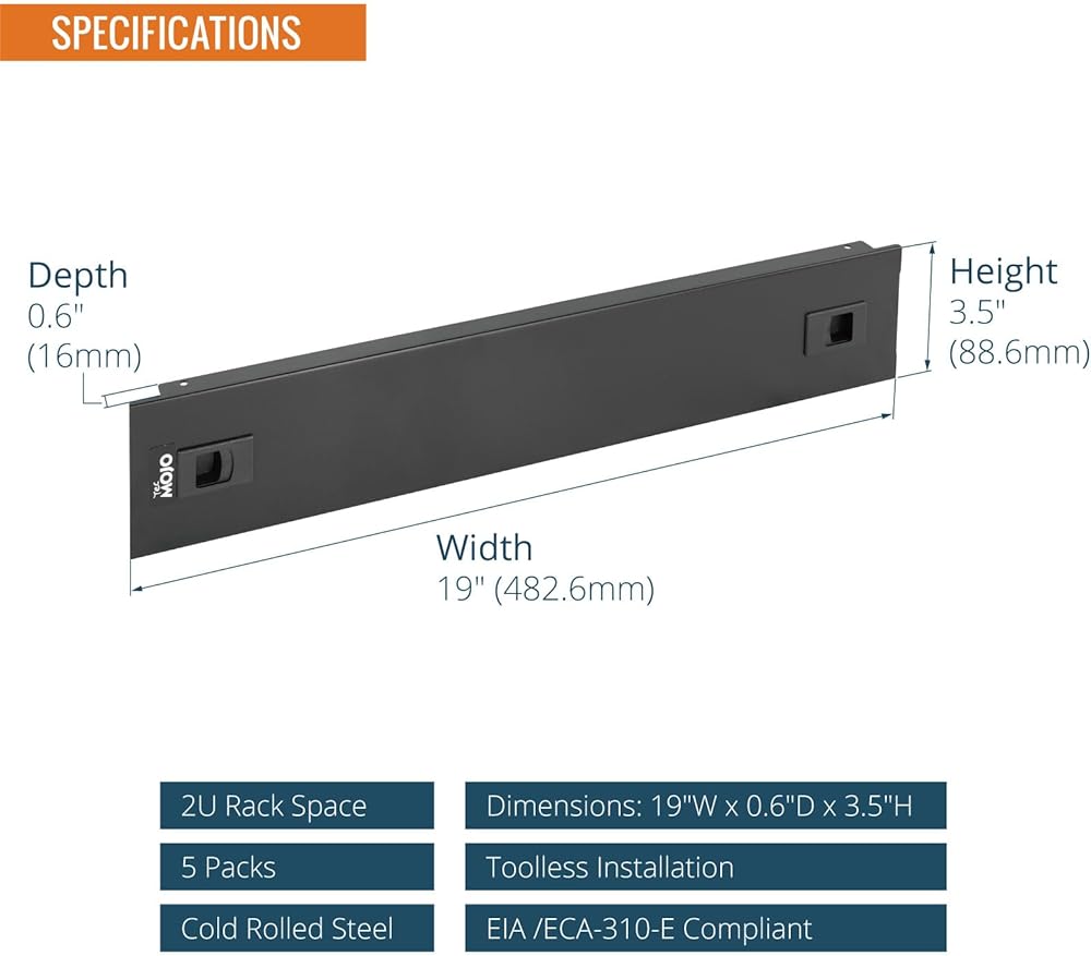 1U Blank Panel, Plastic Rack Blank Panel, Rack Mount Plate for 19 in Server Rack Enclosure or Network Cabinet, Toolless Mounting, Black(10 Pack)