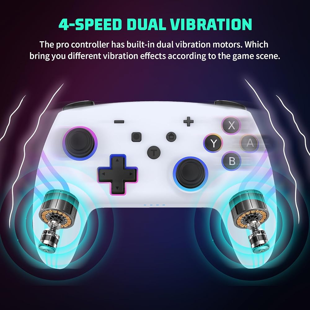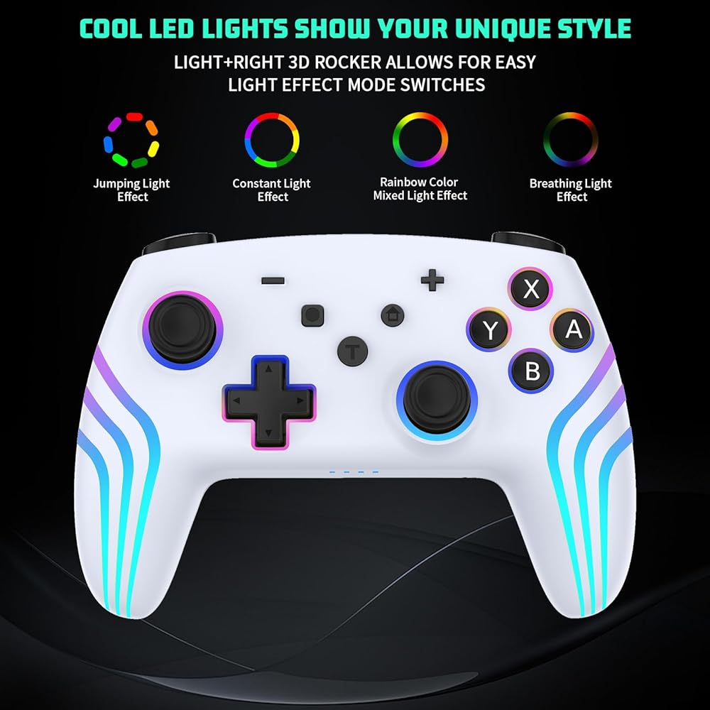 Customise your gaming experience: Crafted with high-quality materials, while dual vibration motors and a 6-axis gyro sensor offer precise control and realistic feedback for immersive gameplay. Customize your experience with motor vibration intensity adjustment and memory function through the Left 3D rocker+up and down. The LIGHT+Right 3D rocker allows for easy light effect mode switches, enhancing your gaming setup with dazzling light options.