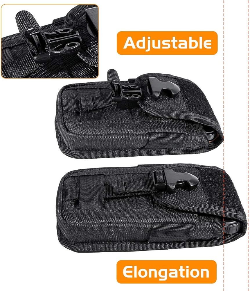 Large capacity: 2 layers for cellphones, 4 card slots and both size with nylon band for attaching buckles/pens. The main pocket compatible with iPhone 16Pro Max/15 Pro Max/15 Pro/15 Plus/15/14 Plus/14 Pro Max/14 Pro/14/13 Pro Max/13 Pro/13/13 Mini/12/11ProMax/XsMax/11/11Pro/XR/X/8+/8/7+/6+, digital camera, cigarettes, power bank, GPS device, keychain, small tools, pen and etc; Slip Pocket fits iPhone X Xs 8 7 6 5 4s.