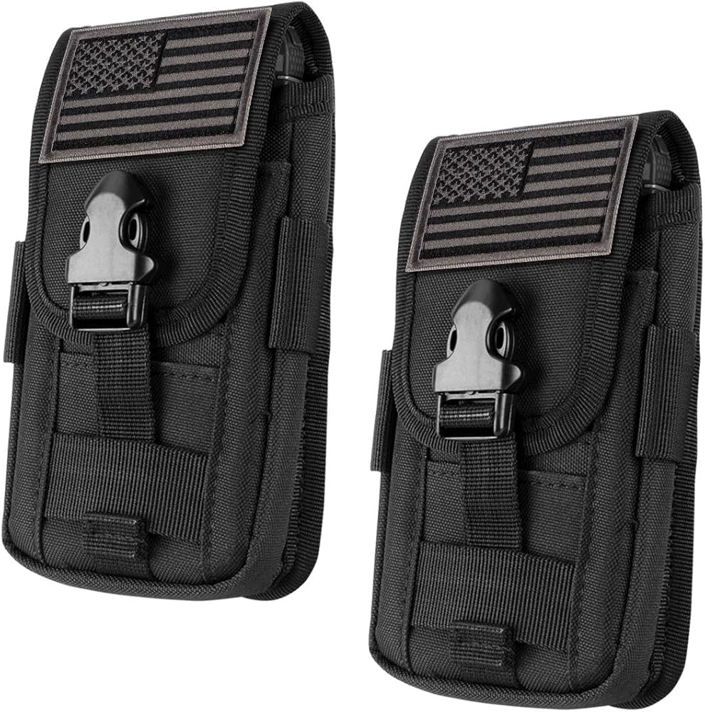 IronSeals 2 Pack Tactical Phone Holster Pouch, Smartphone Pouch Case Molle Attachment Belt Holder Waist for 4.7"-6.9" with US Flag Patch
