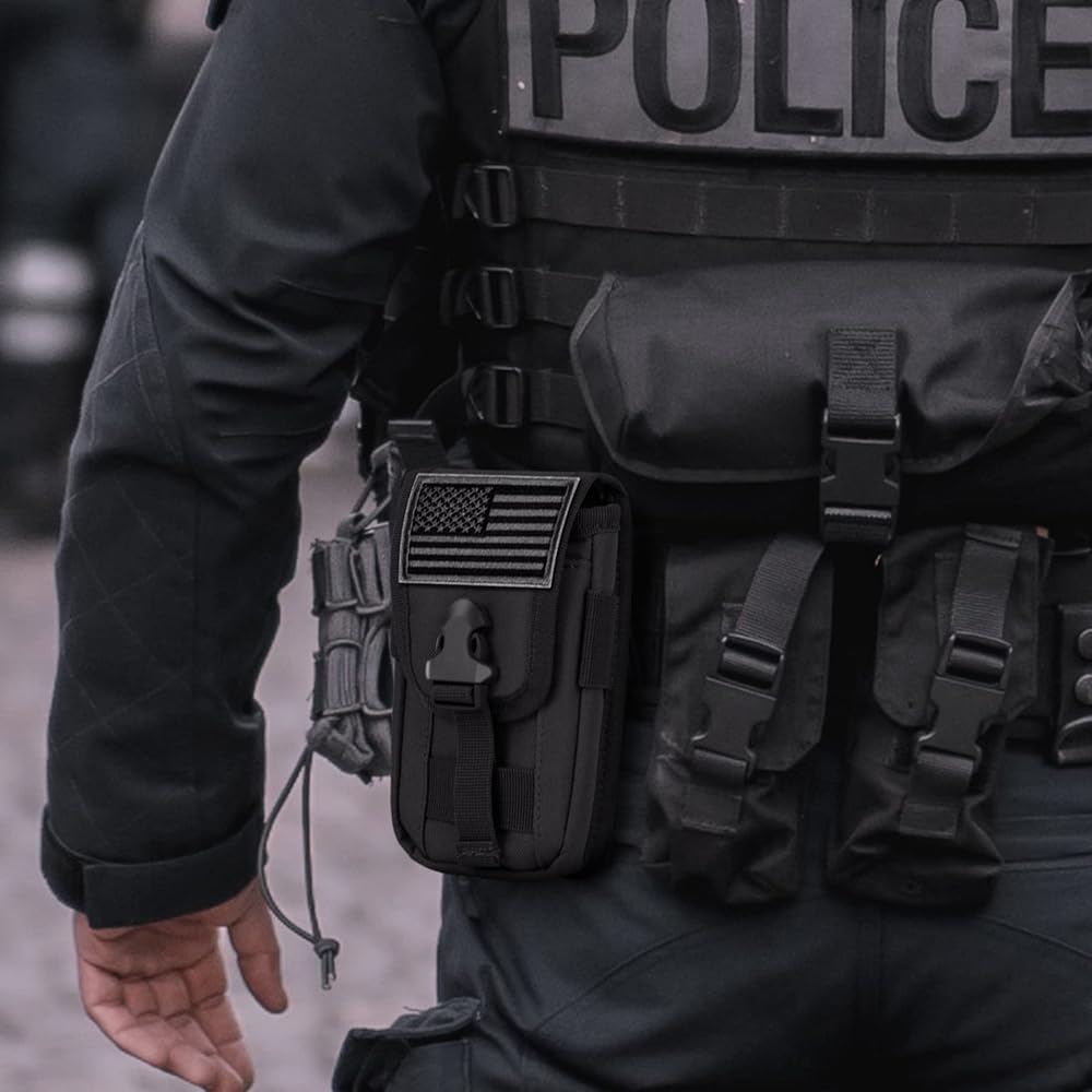 IronSeals 2 Pack Tactical Phone Holster Pouch, Smartphone Pouch Case Molle Attachment Belt Holder Waist for 4.7"-6.9" Phone with US Flag Patch for iPhone 17 Pro/16 Pro Max/15 Pro Max/14 Pro Max