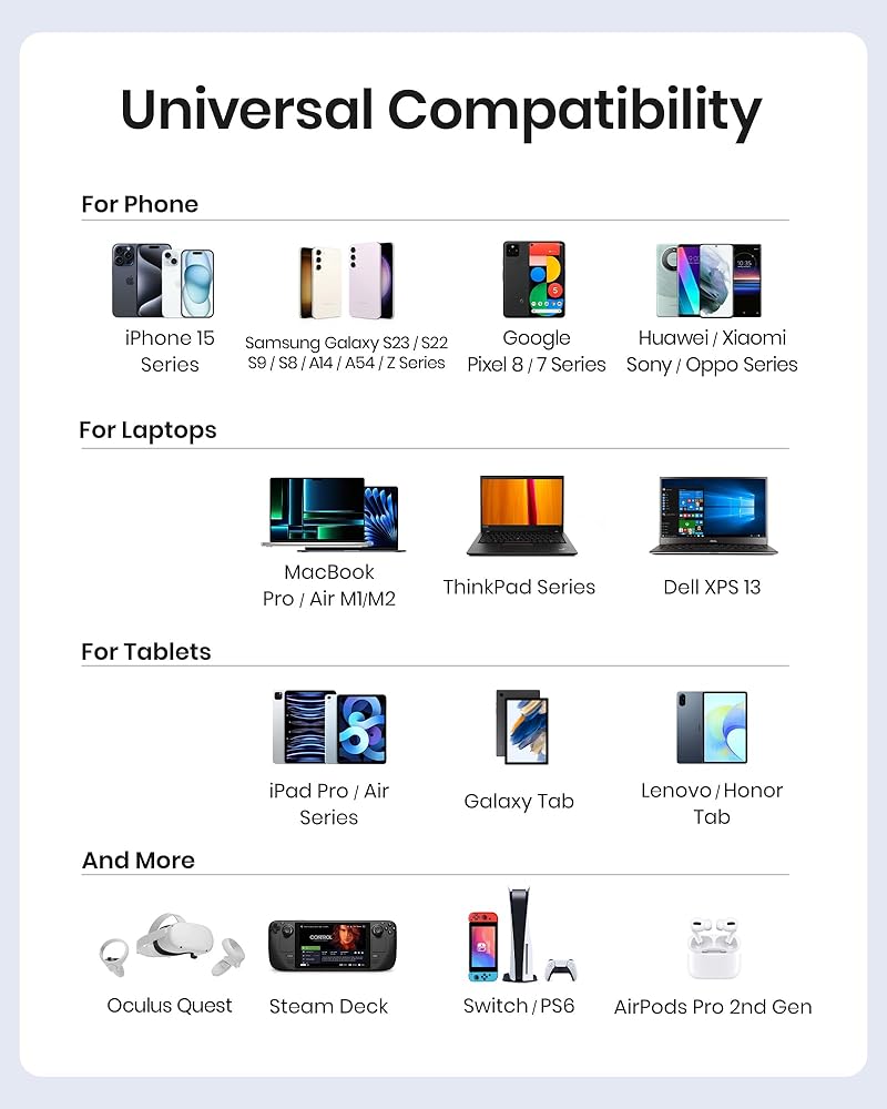 [Wider Compatibility Than 60W] With the powerful 100w output, our type c cable charges a wider range of devices. From phones to ipads, laptops, switch, and beyond, it powers all usb-c devices with ease.