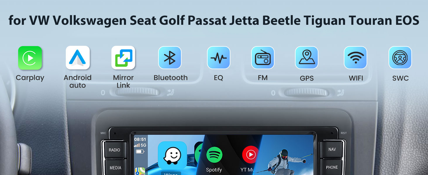 Bluetooth and FM/RDS radio and EQ-32: for VW Golf radio support pair your phone or other devices with the device via bluetooth, and stream music, make calls, and transfer files wirelessly.. Receive radio signals from various stations with clear sound and quality. Listen to music, newsletters and traffic information anytime. 32 frequency division adjustment shocking surround panoramic, sound to listen to every music scenes.