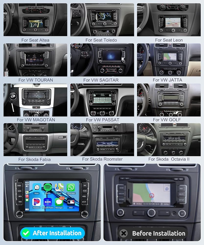 Android 13 Car Radio for V : Compatible Vehicles:for VW Passat Seat Skoda Golf 5 Golf 6 T5 POLO Touran Jetta SHARAN. for Passat carplay stereo equipped with Android 13 system, 4Core CPU, Memory:4GB (RAM)+64GB (ROM) with powerful and stable processing and storage, with no lag or delay. 7 inch HD touch screen: Enjoy a large and clear display with 1280*720 resolutiona nd responsive touch control, which allows you to operate the device easily and comfortably.