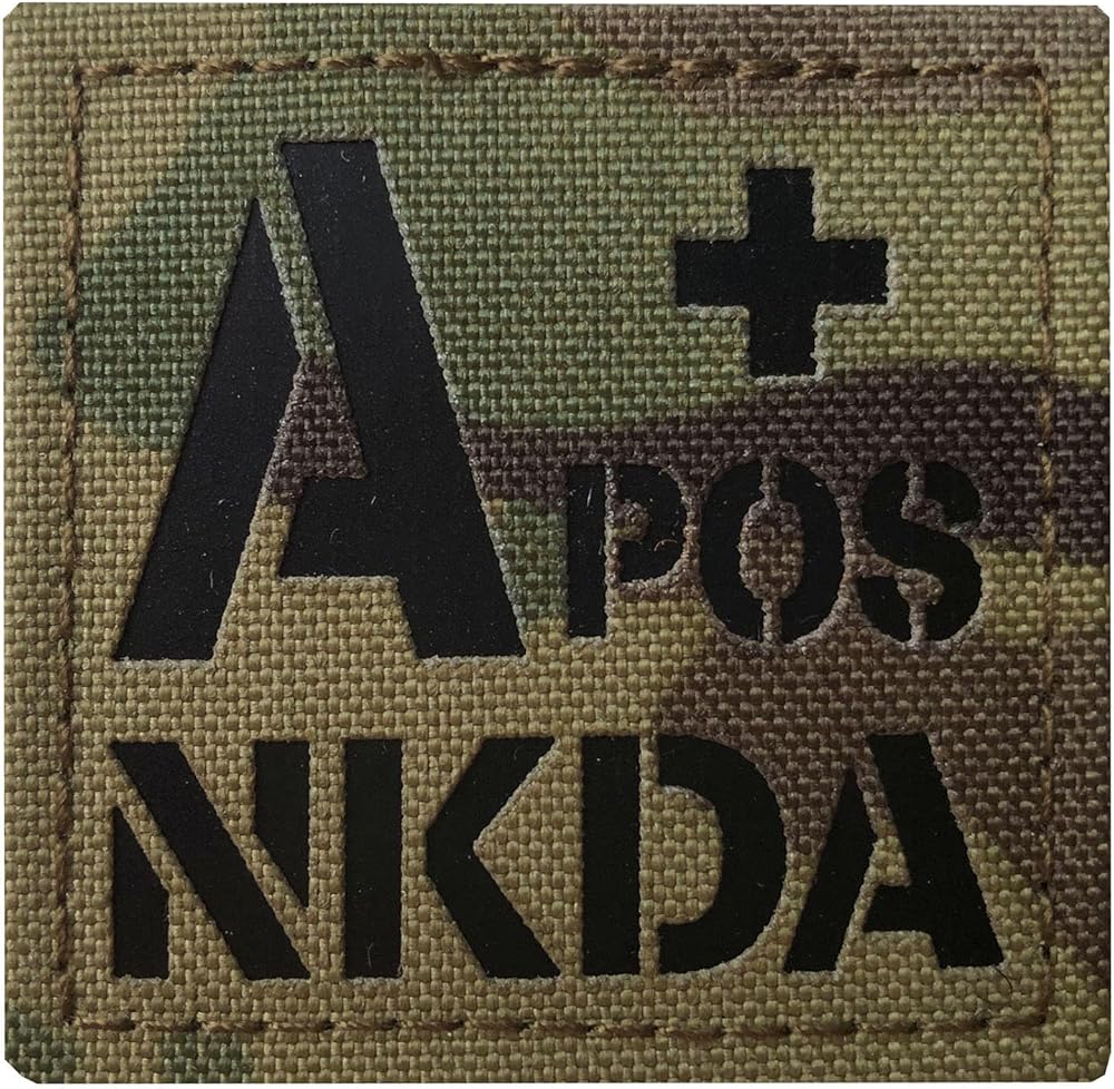Infrared IR A POS NKDA A+ Blood Type Tactical Patch 2x2 Inch Medical Patch with Hook and Loop (Camo)