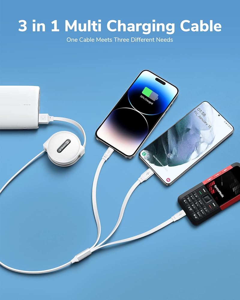 【High-Quality Material & Service Team】CAFELE retractable multi charging cable uses highly elastic flat TPE material for extreme durability and flexibility, which endures more than 10,000 tensile tests without worrying about getting stuck. The high-quality aluminum housing makes the cable more durable and resistant to heat and corrosion. Ensure a longer service life. CAFELE provides 24-hour Online Customer Service. Please contact us with any questions or concerns.