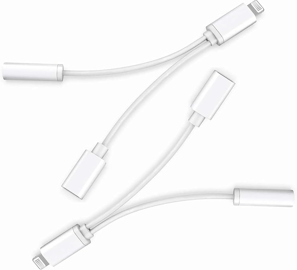 2 Pack iPhone 2 in 1 Lightning to 3.5mm Headphone Audio & Charger Splitter Adapter.