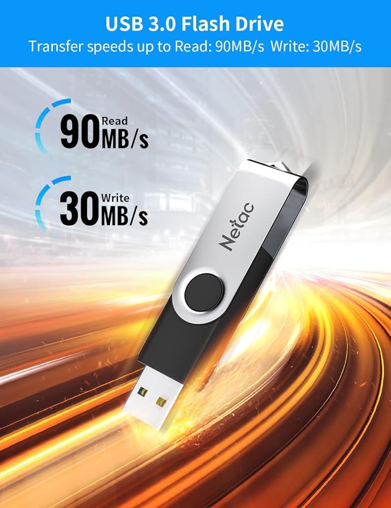 Netac 128GB USB Stick USB 3.2 Flash Drive, Up to 90MB/s, Thumb Drive for Data Storage, Pen Drive with Swivel Design, Memory Stick for External Storage Data/Computer/PC/Laptop/Sound