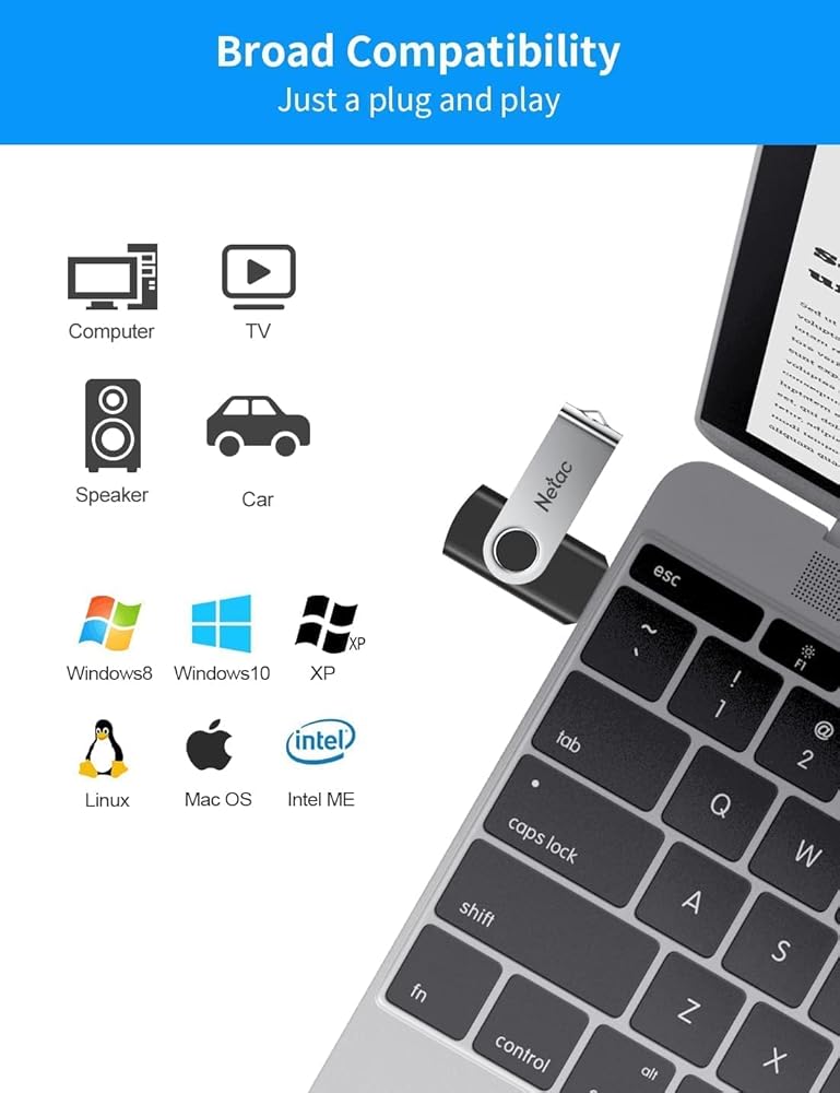 【Broad compatibility】Netac 128GB USB memory stick is compatible with Windows XP/ 7/ 8.1/ 10 and above, it is also compatible with Linux and Mac OSx10.3 and above. Netac 3.0 memory stick supports any digital data, such as music, video, photos, movies, manuals, software, etc.