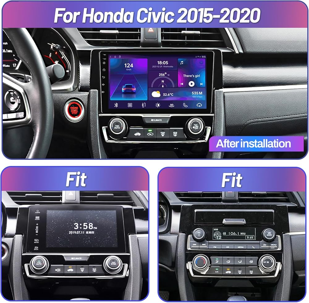 Android 12 Civic Radio: 9 Inch car radio for honda civic 2016 2017 2018 2019 2020 2021; Upgrade 8 core cpu; Android 12 system; High-performance; Faster processing and smoother operation; 2+32 GB memory can perfectly meet your daily need; 1280*720P HD IPS touch screen can provide vivid visual experience; Comes with all accessories needed for installation; Plug in and Play; Ideal replacement to upgrade your honda civic radio and driving experience
