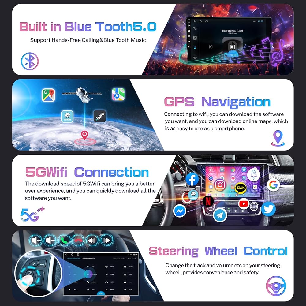 Civic Android Radio: Online and offline navigation; Bluetooth 5.0 and 5GHz WiFi for faster and more stable stata access; Built in AM/FM/RDS Radio, DSP and up to 48 bands equalizer; Preset 8 sound effects and sound field adjustment to provide a immersive and authentic listening experience; Steering wheel control; Mirror link; Voice assistant; Practical features make your driving more convenient and funny