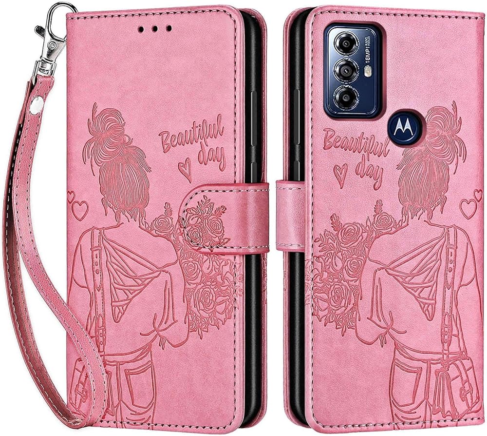 for Motorola Moto G Play 2023 Wallet case, Flip Folio Cover with Stand Feature for Women Men, PU Leather Phone Case Fit for Moto G Play 2023 / G Power 2022 [Pink-Girl]