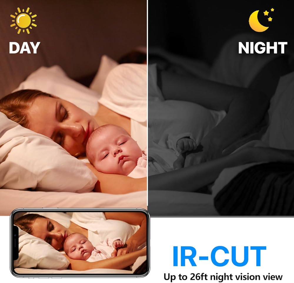 ✔️【Upgrade night vision】— XDWIFI biggest feature is night vision, using two 940nm infrared lights, night vision distance up to 26ft, so you can see very clearly in a low light environment, or even in total darkness, the infrared light is not glowing. Therefore, suitable for installation indoors, outdoors, companies, parking lots and other places to protect your safety.