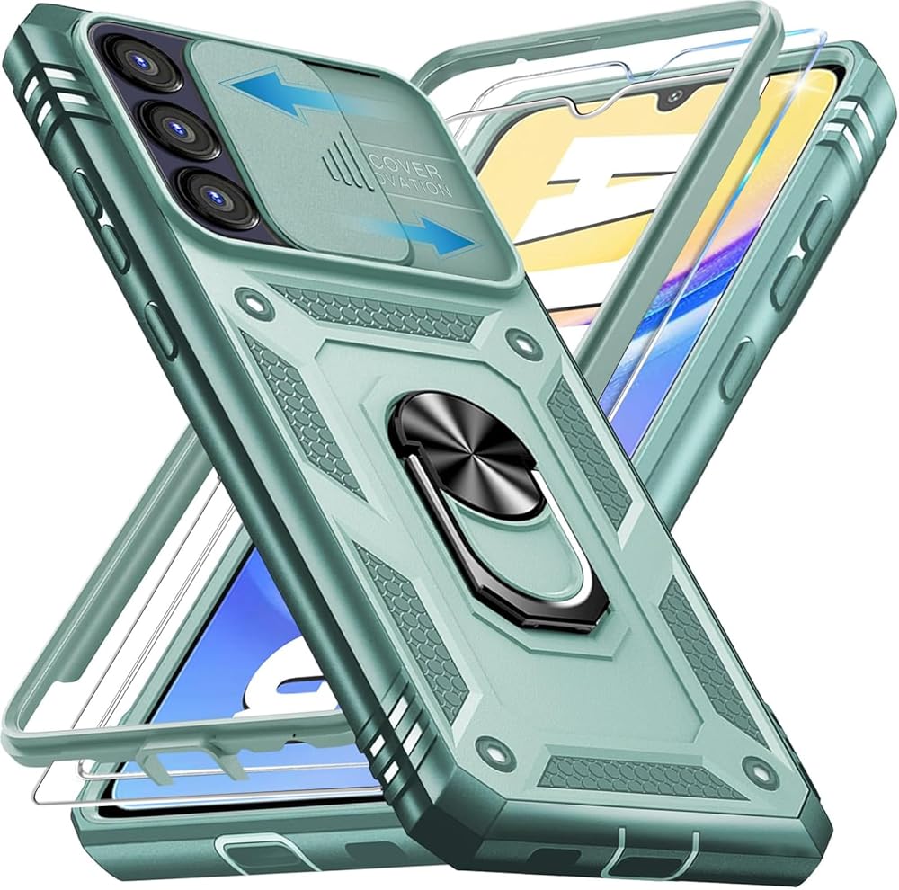 Case for Galaxy A15 5G,Samsung Galaxy A15 Cases with Camera Cover & 2 Pcs Screen Protectors,[Military Grade 20ft.] Shockproof/360° Magnetic Kickstand Protective Case for A 15 5G,Green