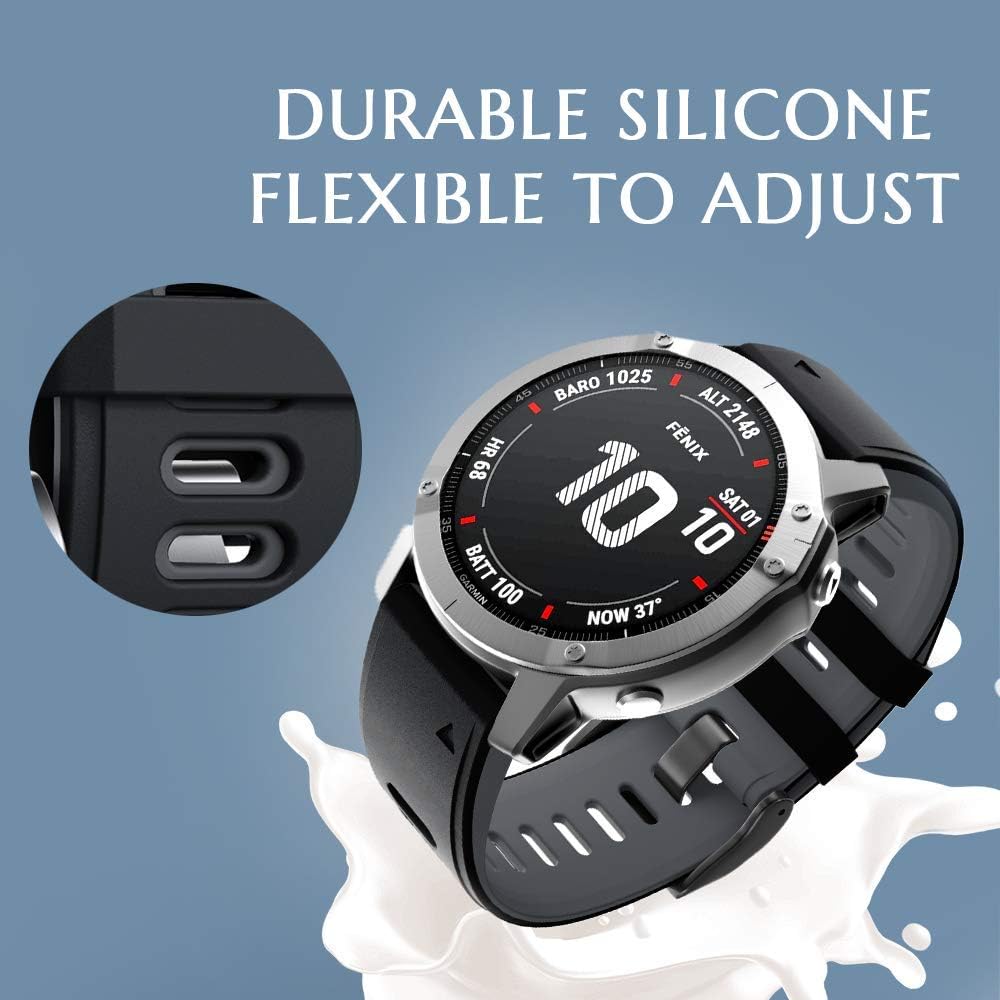 DURABLE EASY FIT MEACHANISM - Precisely molded connection part fits fenix 6 watch well. You could install or remove the watch band in seconds with the easy fit connection. The silicone band keepers will al ways hold the extra band in position.