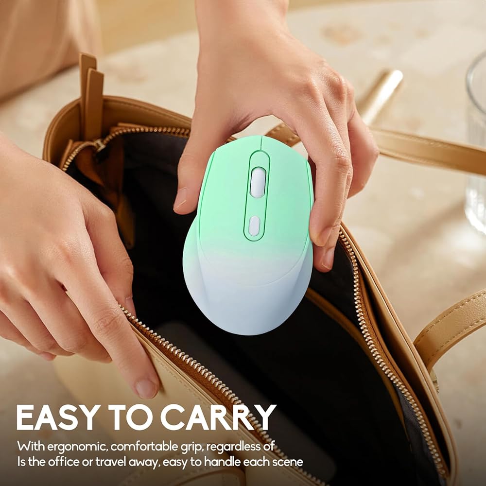Wireless Gradient Color Bluetooth Mouse: Dual Mode Bluetooth Mouse (BT 5.2 + 2.4GHz USB Receiver) Computer Mice, offering soomthing lighting, creating cool and fancy atmosphere for work and play.suitable for ipad ,desktop,tablet, laptop,Macbook, any convenient operation.