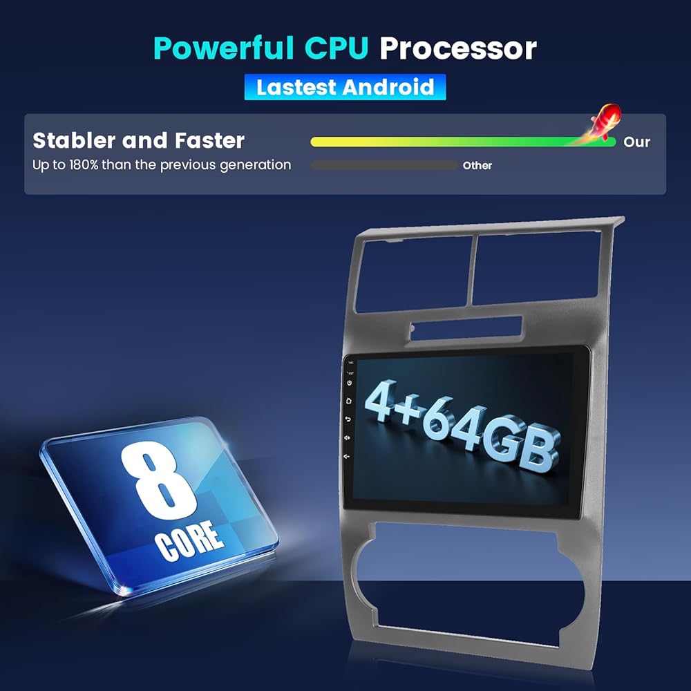 【Latest Android 13 System】8 core processor provides you a more smooth and faster experience. 4+64G ensures a smoothly simultaneous processing of multiple tasks, and you can download more apps on this car stereo for Dodge Charger Magnum