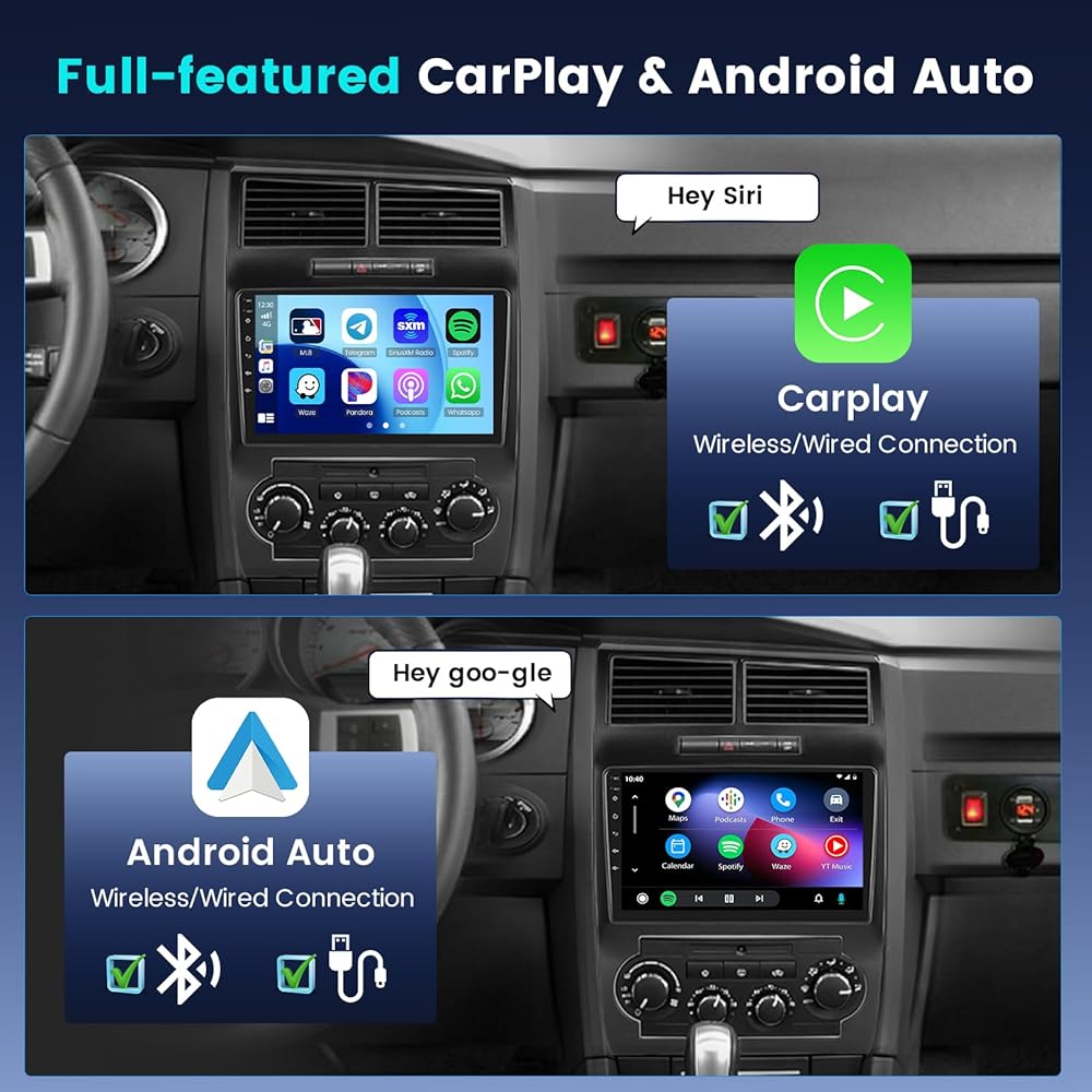 8 Core 4+64GB Android 15 Car Stereo for Dodge Charger/Magnum 2005-2007 Wireless Carplay Android Auto, 9'' Touchscreen Car Radio with GPS, WiFi, 32EQ DSP, 59 UI, Bluetooth, FM RDS, Backup Camera
