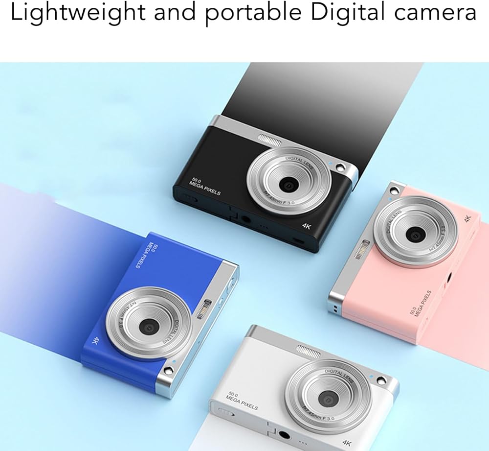 【STYLISH, COMPACT AND PORTABLE】: This portable camera is beautiful in appearance, with simple design, macaron , good looking and practical.Small and portable, easy to travel, lighter and smaller than a mobile phone, the anti lost lanyard hole is intimately protected, and the 1/4in screw interface is convenient for stabilizing the camera.